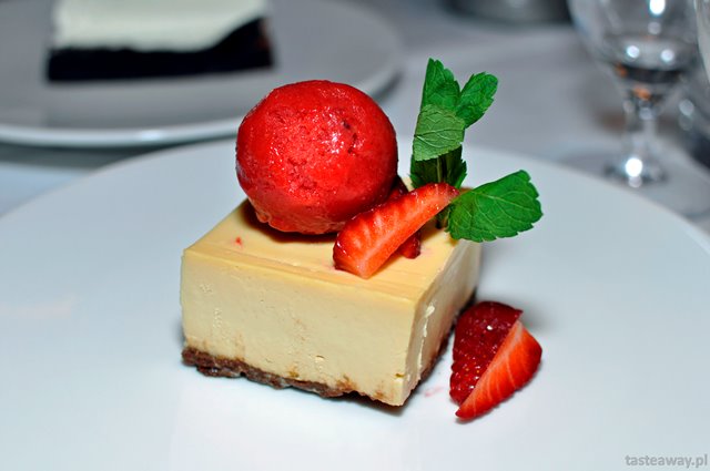 Na koniec przyszedł czas na desery. Niestety w naszych 4 brzuchach miejsca starczyło nam tylko na dwa: delikatny, puszysty sernik, wręcz mus, pięknie podany z kulką sorbetowych lodów na górze oraz brownie z bitą śmietaną i owocami. Uwagi? Trochę za dużo bitej śmietany, a za mało brownie. Poza tym desery w pełni zaakceptowane!