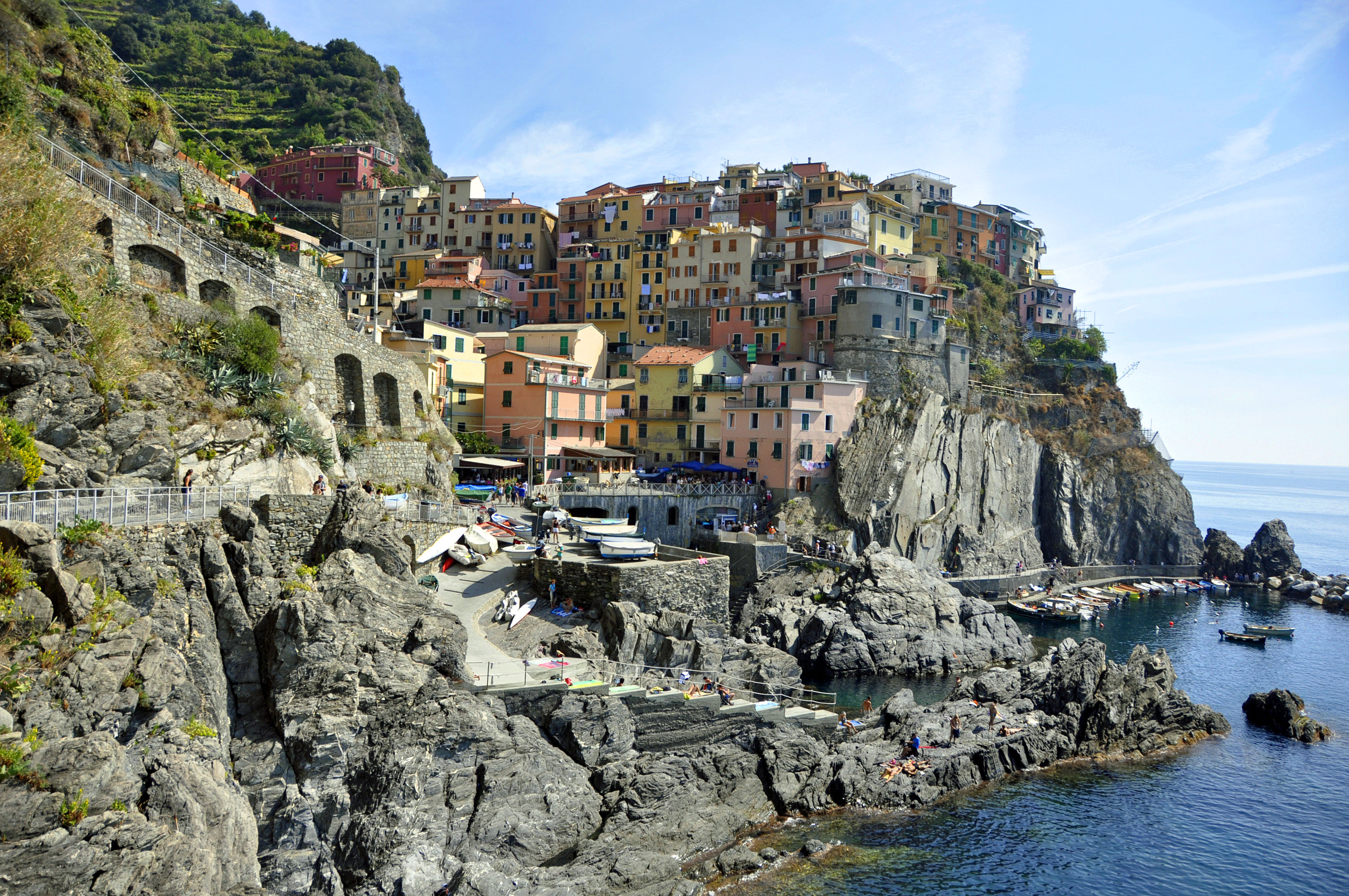 Cinque Terre is, as the name suggests, an area of five towns. Five tiny towns I should add, as they have 1,000-2,000 inhabitants each. All of them are situated within a close distance, so you can in fact also visit then on foot, provided that you don’t have a baby in a pram with you ;). Cinque Terre are picturesquely located on hills, with small ports and colourful houses adding to their overall charm. The “group” combines of Vernazza, Manarola, Corniglia, Riomaggiore and Monterosso, all of which are on the list of UNESCO world heritage sites.