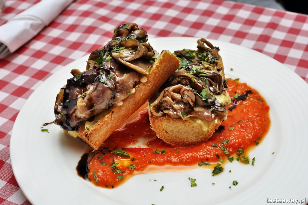 It’s hard to choose since we want to try so many different things! French cuisine keeps bringing good memories, not only after our stay in Paris but also after out trip through the North of France with 2.5 month old Maks. Brittany and Normandy were absolutely magical, fantastic an full of flavours and picturesque places. I finally manage to make a decision. I take toasts with aubergine(PLN 13) while Łukasz gets quemelles de brochet (PLN 18) which the waitress describes as a ‘fish dumpling’ – we’ll see what’s that! When it comes to main courses we order two classics: confit de canard (PLN 35) – duck leg confit with sliced potatoes and boeuf bourguignon (PLN 32) – beef Burgundy.