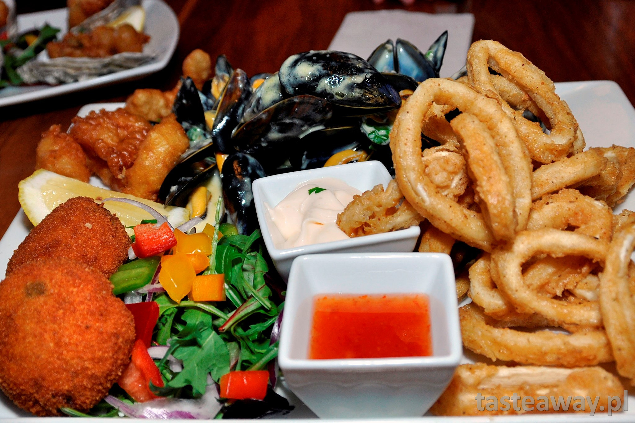- seafood platter czyli krewetki, dziki łosoś, ostrygi i homar