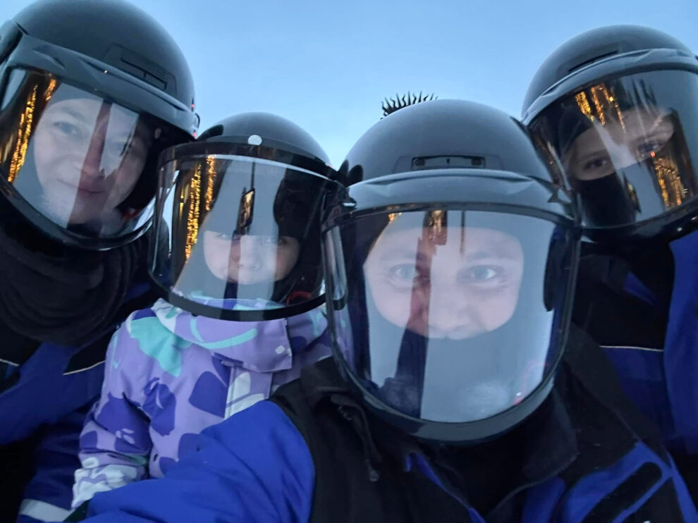 Ta atrakcja również trwa 2 godziny i tutaj są to faktycznie 2 godziny jeżdżenia skuterami! Uwaga: na skuterze mogą jechać tylko osoby powyżej 14 lat. Ewentualnie na granicy jak nasz Maks. Młodsze dzieciaki są przewożone specjalnym “pociągiem”, więc tutaj nie jest to dla nich jakaś wielka atrakcja – mniej widać, nie czuć tego śnieżnego klimatu. Do rozważenia czy jest sens te młodsze zabierać na skutery śnieżne czy nie pozostawić tego jako atrakcji dla dorosłych.
