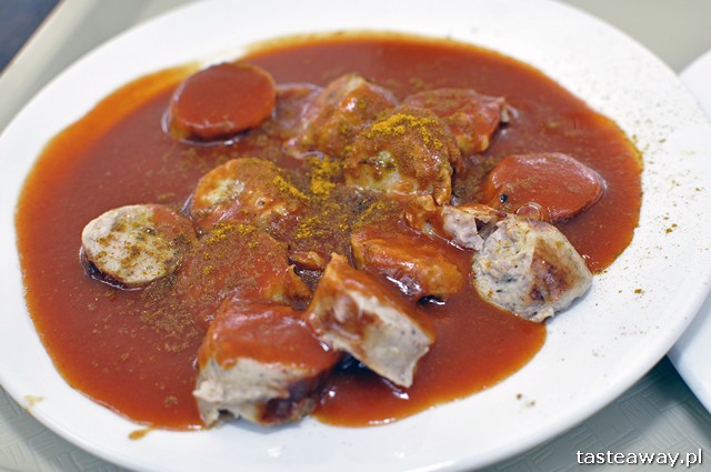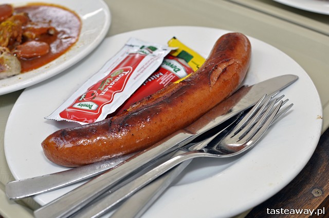 Naszą największą miłością okazał się currywurst, czyli pokrojona kiełbasa wieprzowa polana pomidorowym sosem (coś na bazie koncentratu, podobno w wersji “low cost” może być też ketchup) i posypana curry, najlepsza z preclem, ewentualnie z bułką. Łukasz ostrzył pazury na currywursta od przyjazdu, bo poznał go już w Wiesbaden, gdy w 2011 roku odwiedzaliśmy tam znajomych. Ja nie byłam przekonana (nie wygląda jakoś super;)), ale okazało się, że smakuje…bosko! Tę opinię chyba potwierdza cała masa Niemców, bo w dużych, niemieckich miastach sprzedaje się około 800 milionów porcji rocznie!!! WOW!
