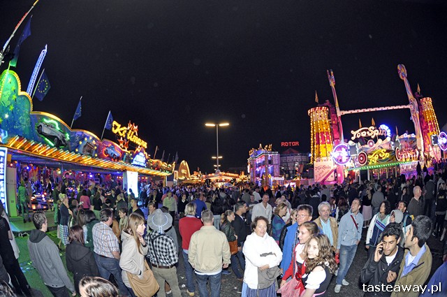 Na terenie Oktoberfestu piwo sprzedawane jest do jakiejś 23-24.00, ale w sumie nie ma się co dziwić, jak zabawa trwa cały dzień. My po piwie korzystaliśmy z atrakcji wesołego miasteczka – najlepsza zabawa: samochodziki, które dla mnie przywodzą na myśl wspomnienia z wakacji nad morzem i samochodzików z moim Tatą w 1993! Pojedliśmy też trochę słodkości, czyli owoców w czekoladzie, które można kupić na KAŻDYM rogu. Jak widać zatem nie tylko piwo, piwo, piwo…