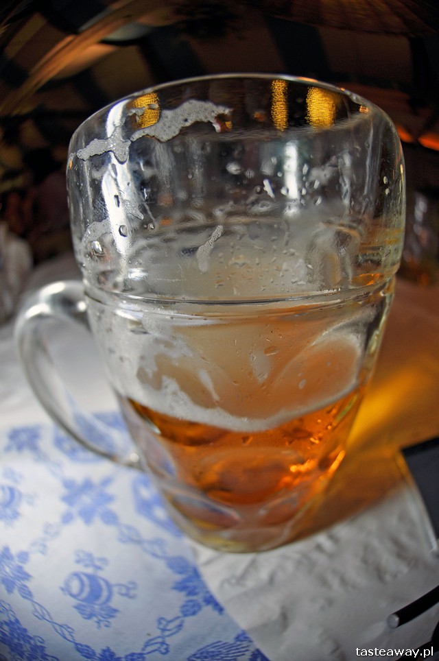 Poza piwem prawie wszyscy w halach jedzą to samo – pieczoną kaczkę lub kurczaka (pyszny, soczysty z chrupiącą skórką) z ziemniaczanym knedlem (mniam! uwielbiam!) i ewentualnie czerwoną kapustą. Nie mogliśmy zatem z tych przysmaków zrezygnować!