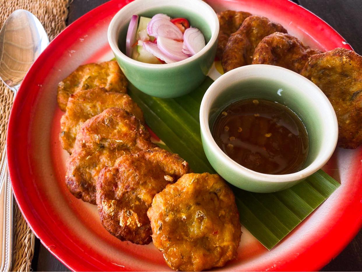 Nasze dzieci najchętniej wybierały pad see ew albo sataye z kurczaka. my poza sałatkami jadaliśmy przede wszystkim tutejsze curry – musicie koniecznie spróbować massaman curry – z kurczakiem (Gaeng Massaman Gai) albo z owocami morza. Super wypada też panang curry. Zarówno Massaman, jak i Panang Curry to typowe potrawy właśnie na południu Tajlandii, więc obowiązkowo trzeba je tutaj zjeść. Z przystawek weźcie fish cakes oraz shrimp cakes! Odpuścić możecie natomiast spring rolls 😉